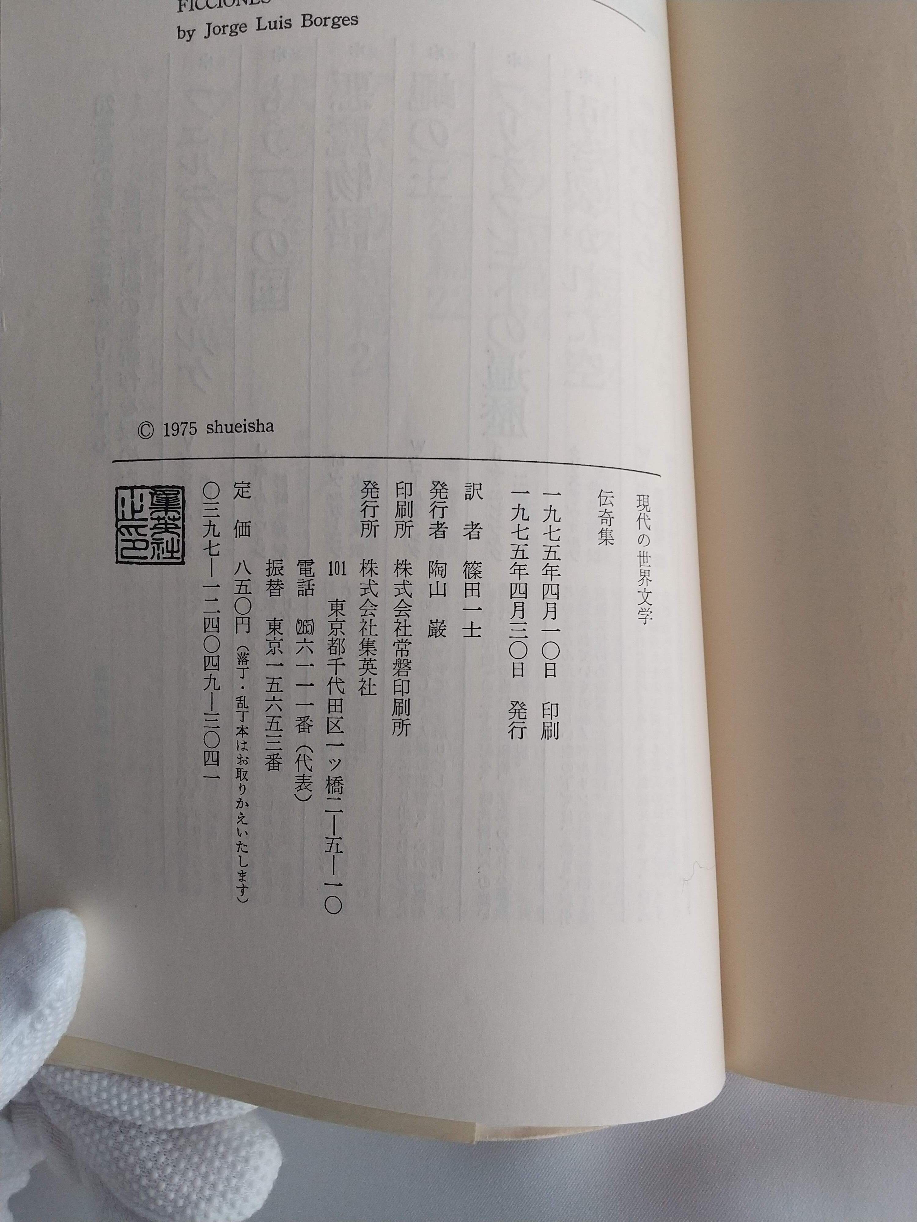 【初版・良好】『伝奇集(FICCIONES)』ホルヘ・ルイス・ボルヘス/篠田一士訳|集英社|幻想文学・短編集|古書