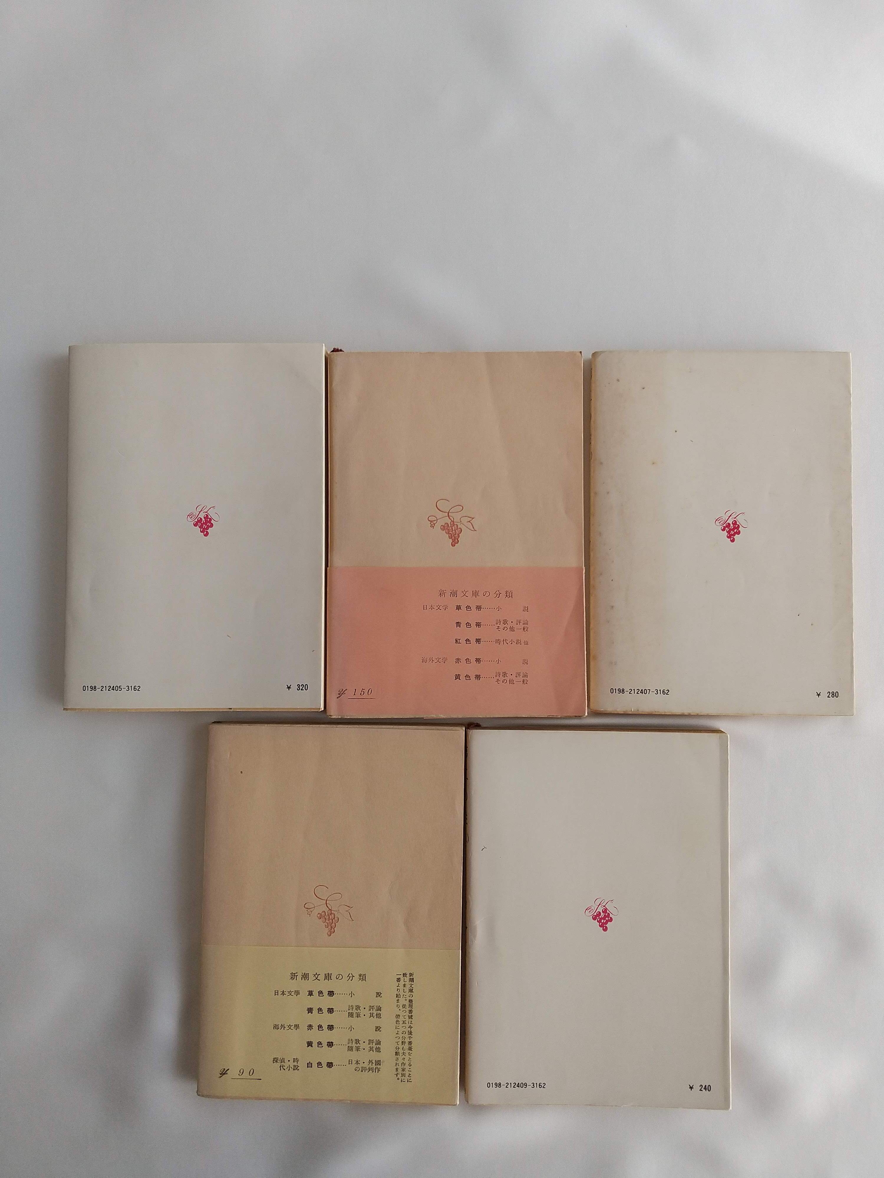 こちらは新潮文庫のⅠ〜Ⅴ、全5巻セットです。正直にお伝えすると、経年のヤケ・シミ・スレがあり、全体として状態は「並」。さらにⅣには有者の記名があり蔵書印(シール)挟み込まれています。新品のような無垢さはありません。でもその分、時代をくぐって読み継がれてきた「重み」があると、私は感じました。