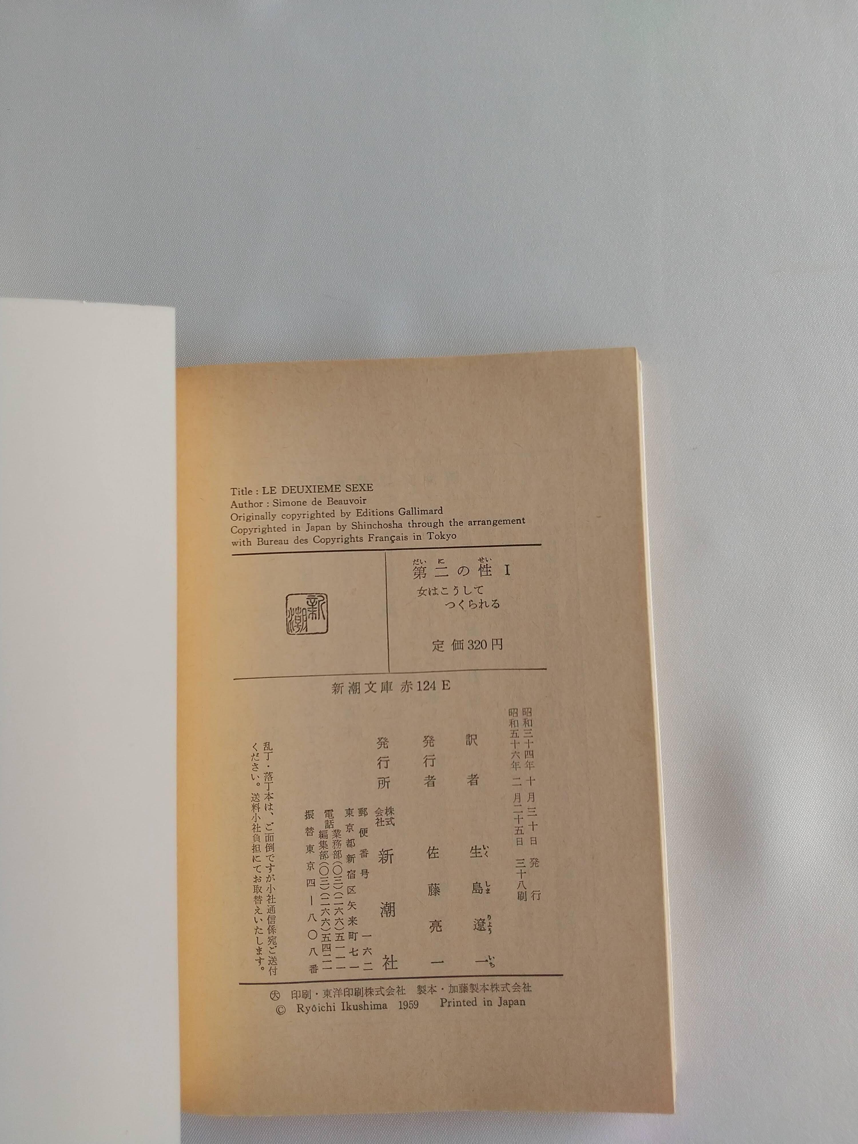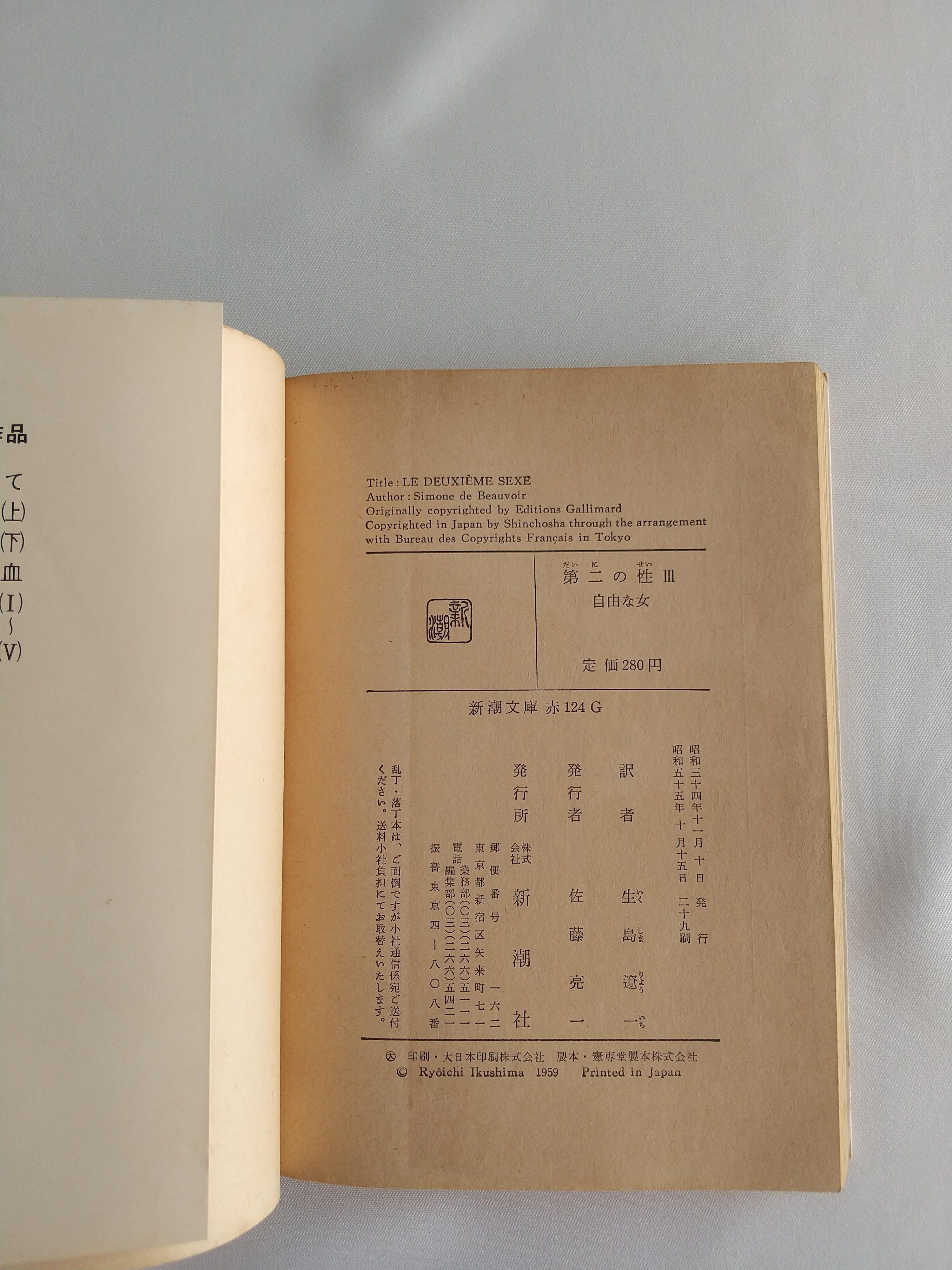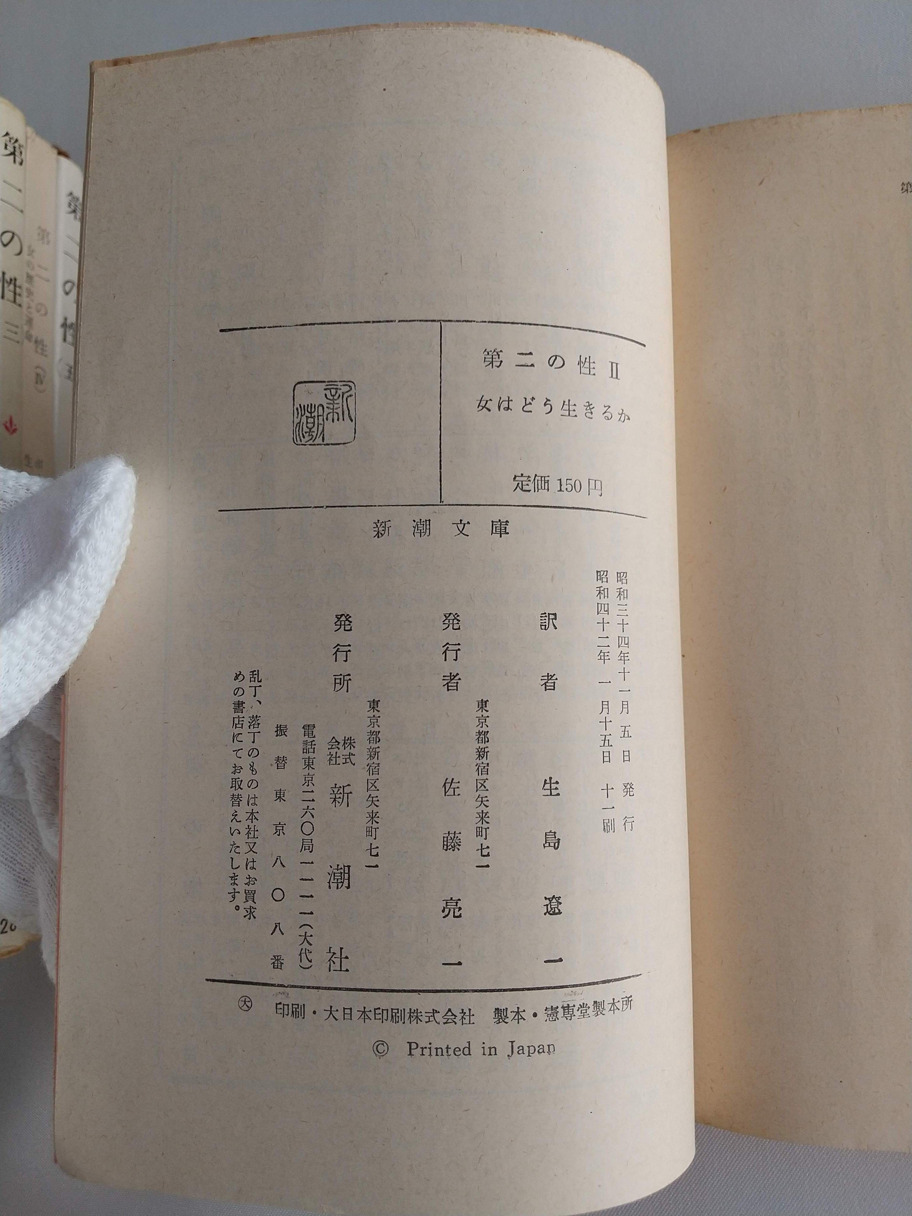 【状態並】全5巻セット|第二の性Ⅰ〜Ⅴ|新潮文庫|ボーヴォワール|思想 古本