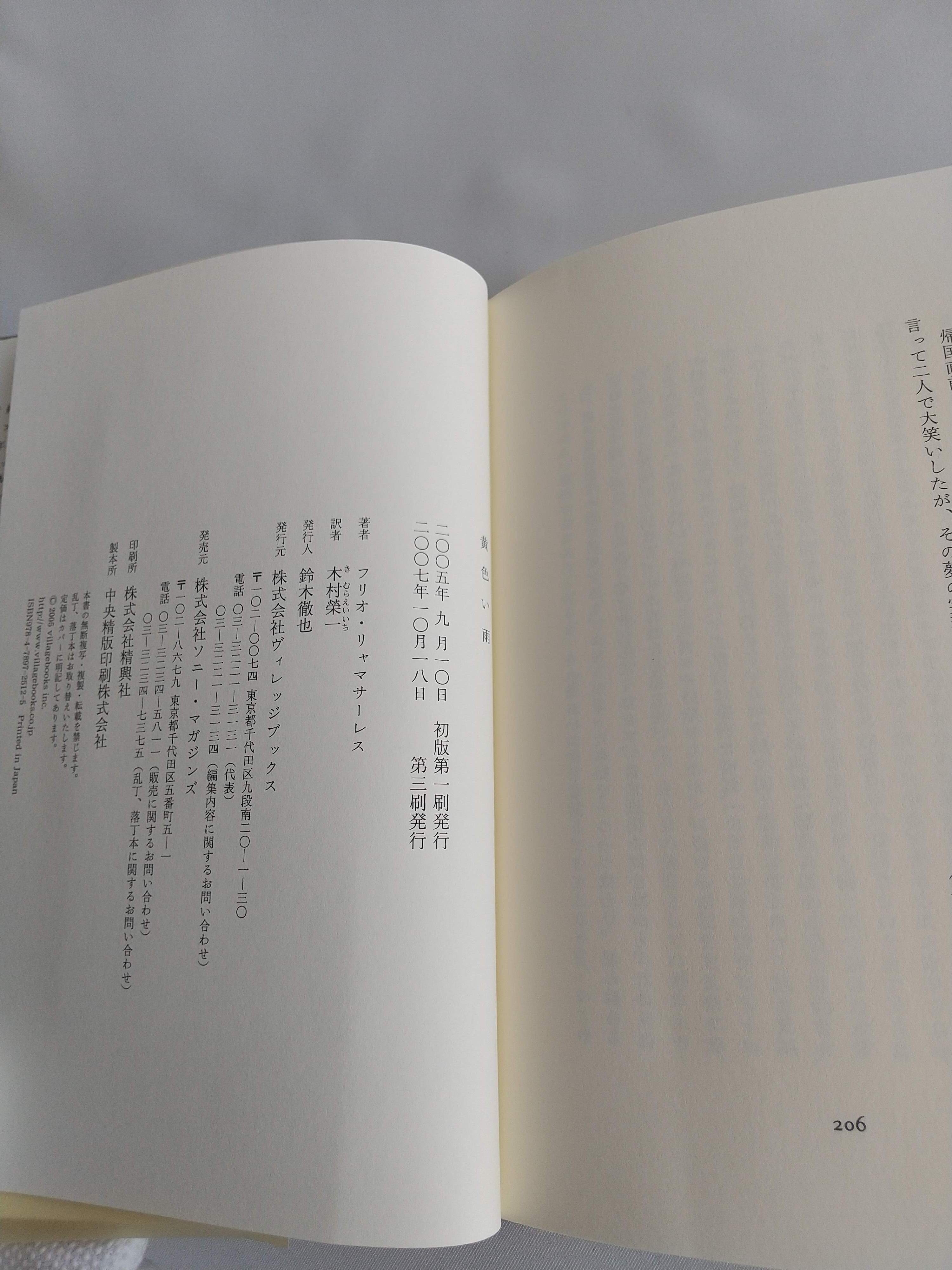 【美品寄り・3版】2007/10/18|黄色い雨|木村榮一訳|ヴィレッジブックス|古本